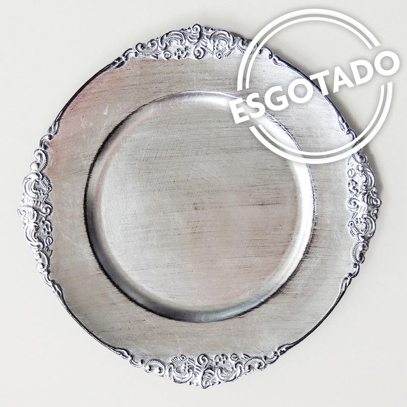 Sousplat redondo prata com arabesco preto (3 unid. em estoque)